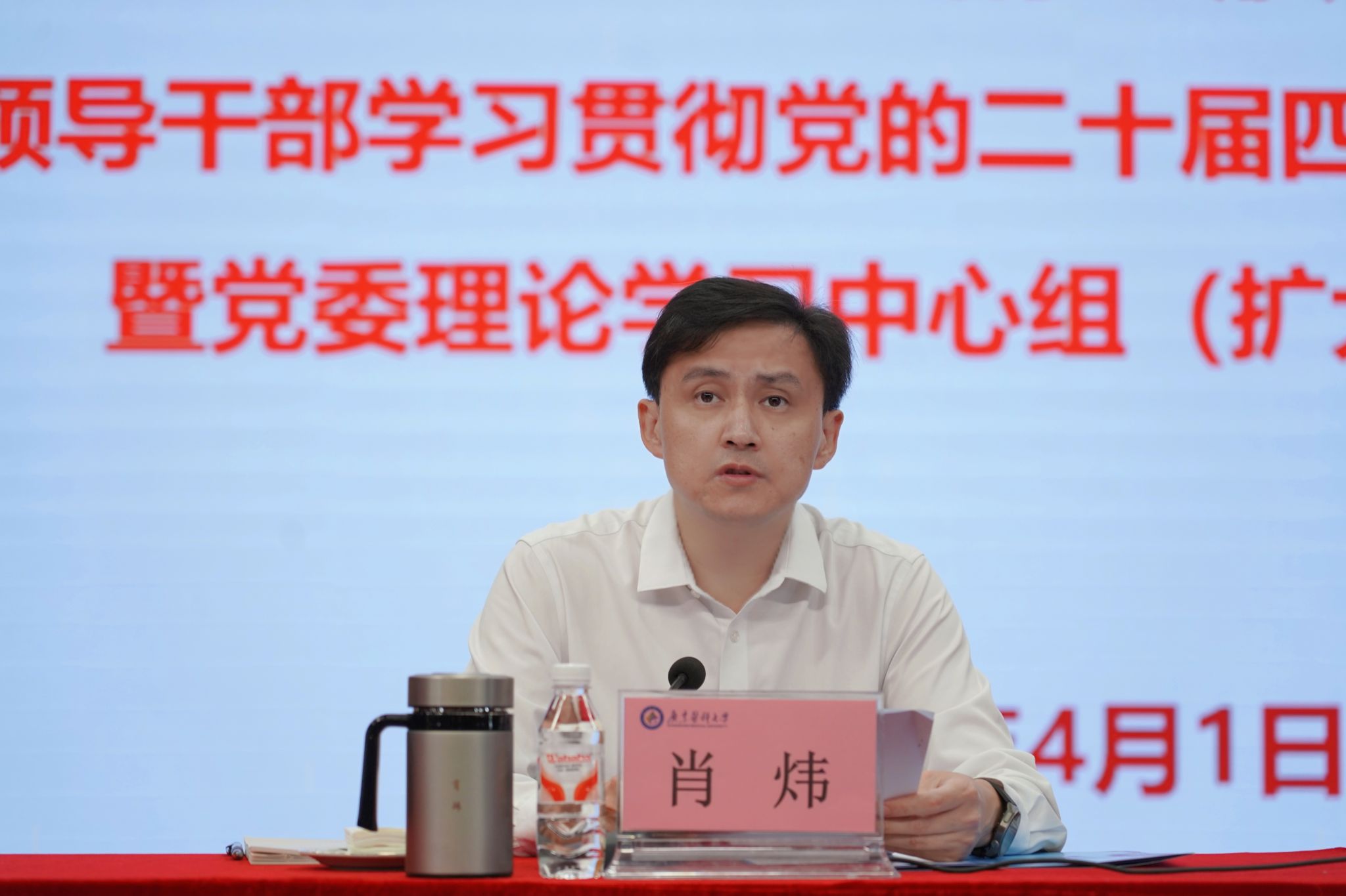 4月1日,广东医科大学领导班子树立和践行正确政绩观学习教育读书班、中层以上领导干部学习贯彻党的二十届四中全会精神专题研讨班暨党委理论学习中心组(扩大)学习会在两校区举行。会议以“深入学习贯彻党的二十届四中全会精神,以正确政绩观奋力推动学校‘十五五’高质量开局”为主题。学校党委理论学习中心组全体成员、校领导、全体中层干部、七八级职员及辅导员参加会议,会议由学校党委副书记、校长肖炜主持。学校党委副书记黄达海以《...