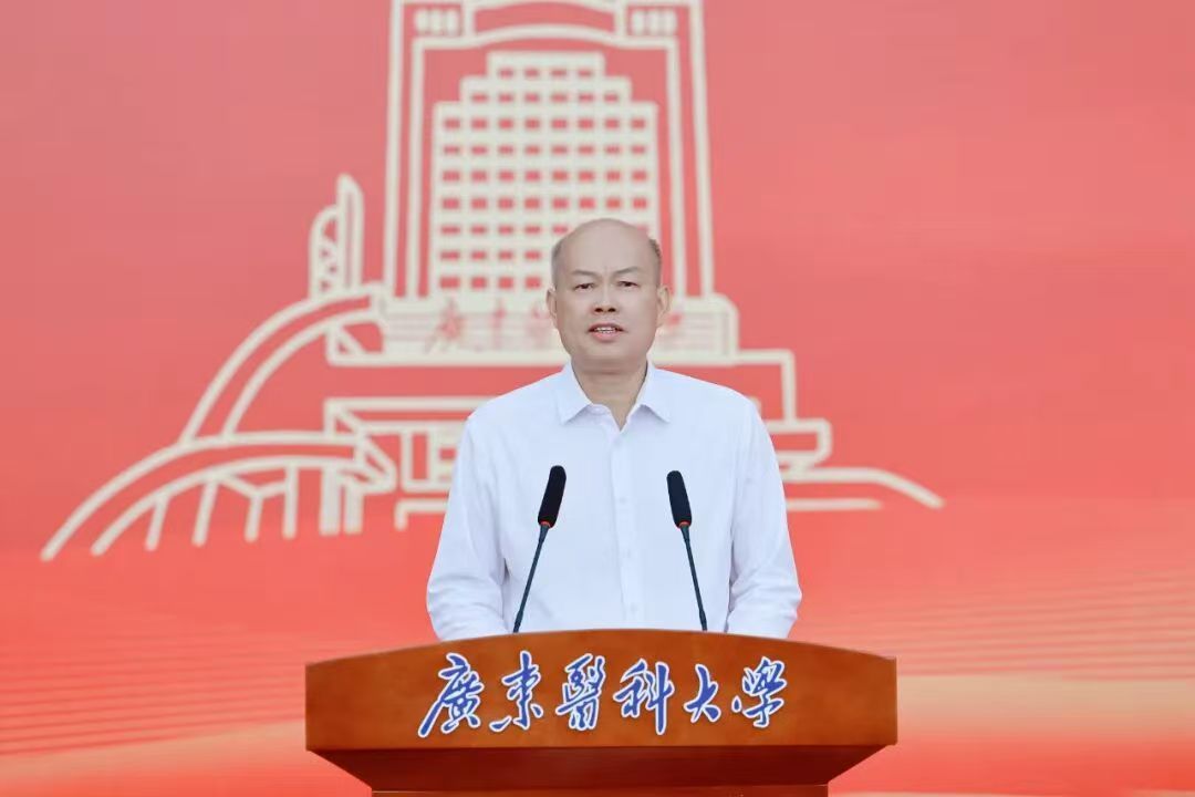 卢景辉表示,广东医科大学是一所有历史、有担当、有未来的大学。回顾披荆斩棘、筚路蓝缕近70年的发展历程,自强不息的奋斗拼搏精神始终激励着一代代广东医人不懈追求、迎难而上、勇往直前,与祖国同行、与时代共进,取得了一系列令人瞩目的办学成就。希望新生们在浩如烟海的知识宝库中尽情遨游,磨砺坚韧的意志,锤炼精湛的技术,涵养高尚的品德,在不断超越中绽放耀眼荣光、成就美好未来。要以“积微”之心做“成著”之事,日积月累、久久为功,将无数“微小”努力汇聚成河,不断突破已知、探索未知、求得新知,在不断拓展知识边界中学会博采众长、学会融会贯通、学会创新方法,以青春之我、奋斗之我,为强国建设、民族复兴伟业贡献青春力量。要始终坚定永不懈怠、勇往直前的意志品质,一步接一步、一程接一程努力奔跑,用驰而不息的拼搏驱动奋发有为的齿轮,仰望星空、脚踏实地,创新图强、勇攀高峰,在追逐梦想、风雨兼程的人生征程上朝着美好未来坚定迈进。
