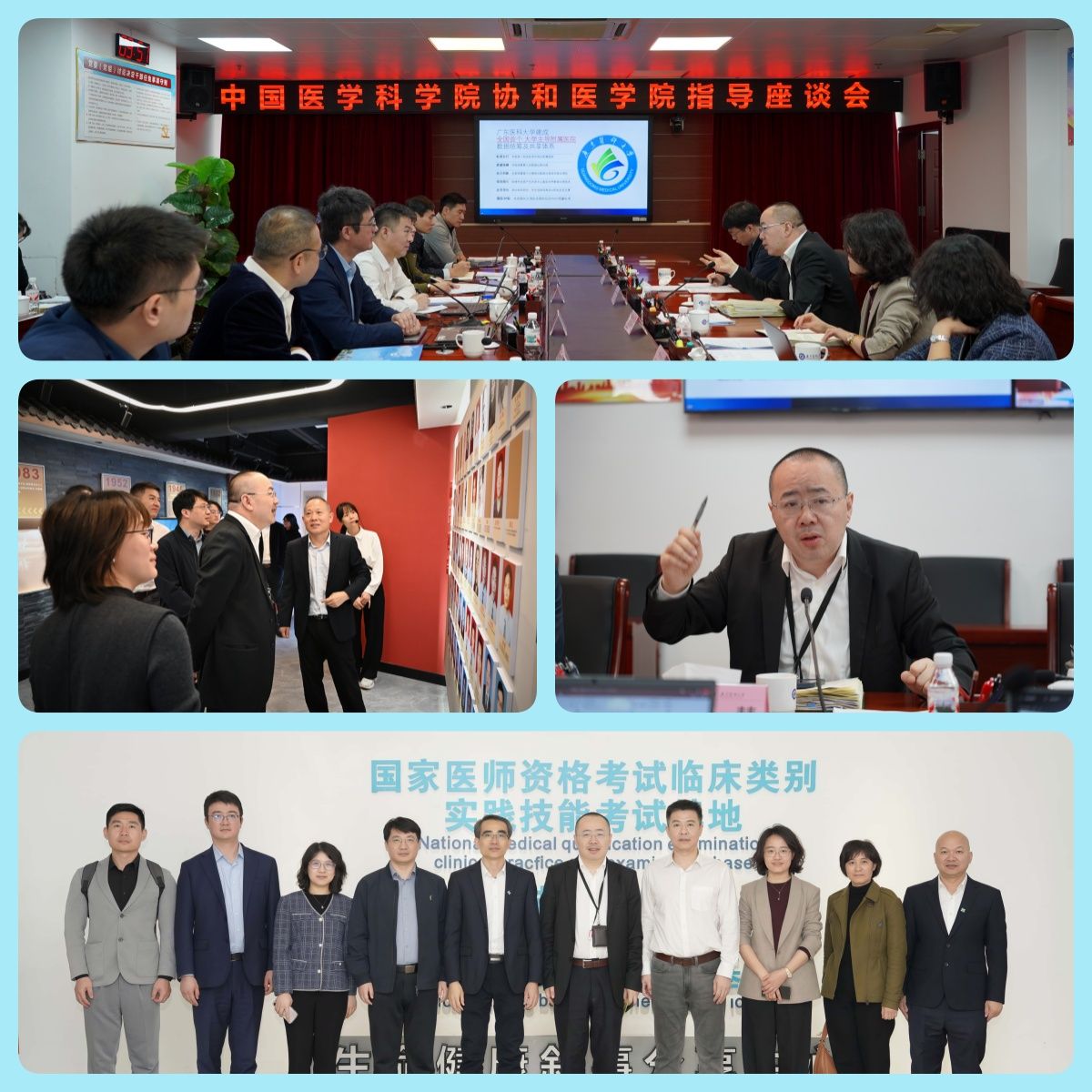 学校党委书记卢景辉、党委副书记校长肖炜等陪同参观学校校史馆。指导座谈会中,学校党委常委、副校长佟矿介绍了学校整体发展情况,生物医学工程学院大数据工程中心吴博详细阐述了学校AI医学院建设情况,多模态数据融合创新实验室主任弓孟春汇报了医学生与教师AI素养培养及测评体系建设成果。